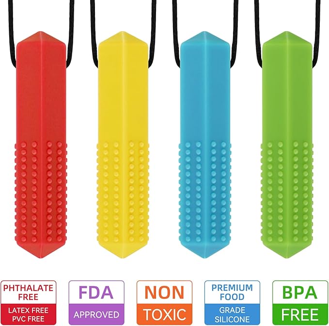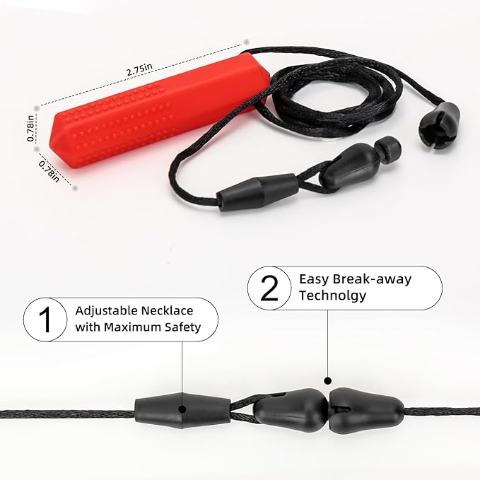 • The chewy necklaces for sensory kids are made of 100% food grade silicone, safe and durable. All of chew toys for kids are free of BPA, latex, or lead. And chewing necklace comes with breakaway clasp for extra safety for your kids.