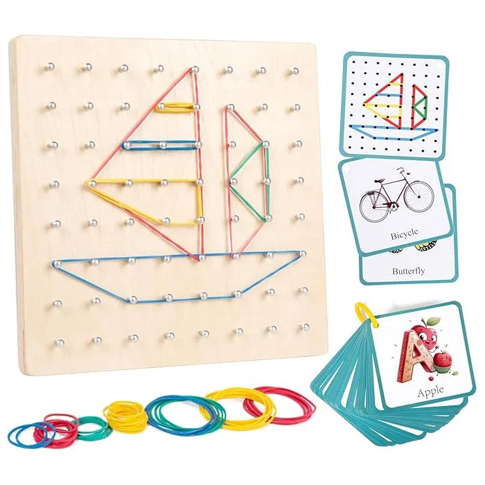 Wooden Geoboard with Rubber Bands